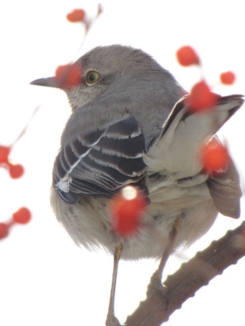 Dark-eyed Juncos, one of our numerous species of native sparrows, are sometimes called “snowbirds”, and for good reason. They spend the majority of their time on the ground searching for seeds and are particularly noticeable when the landscape is blanketed in white.Juncos are seldom seen far from trees, shrubs, and brushy patches of herbaceous growth where they can find both the foods and the protective cover they need to survive the cold.To make it through the winter, a Northern Mockingbird is again defending the garden’s supply of fruits adorning Common Winterberry, American Holly, and Eastern Red Cedar. Robins, starlings, waxwings, and bluebirds must be stealthy and quick if they want to grab a snack before the ever-alert mockingbird aggressively moves them on their way.As they mature, our plantings of junipers, hollies, Eastern Hemlock, Norway Spruce, and Eastern White Pine offer the environs needed by evergreen-loving species like this Red-breasted Nuthatch to remain as winter residents instead of just seasonal transients.