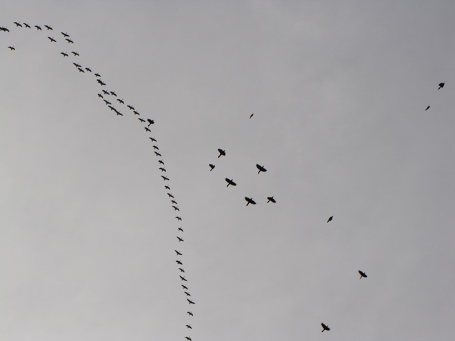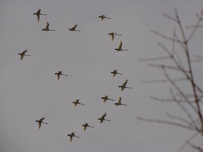 Step outside, take a listen, and look up. A substantial northward movement of early migrants is, at this writing, underway across the lower Susquehanna basin—primarily in the skies within five to maybe ten miles of the river corridor. Within the last hour, we witnessed a steady parade of geese, swans, and blackbirds in the skies above the headquarters garden. These are not birds that are staging or are in the midst of a stopover here during their journey north. They are instead flocks taking advantage of favorable conditions to make a big jump from Chesapeake Bay and adjacent areas of the Atlantic Coastal Plain into territory to our north and northwest that was just two weeks ago in the middle of a deep freeze. Compared to the slowpokes whose northbound movements are a bit more cautious, the shared determination of these birds to get to the nesting grounds first may be advantageous for their breeding success.