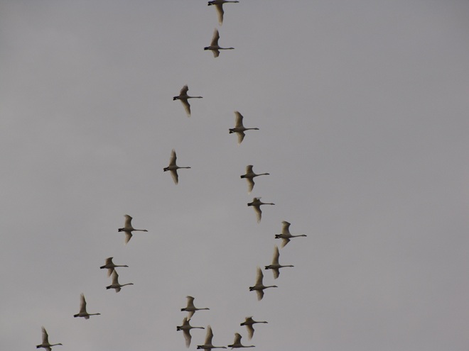 At least 2,000 migrating Canada Geese passed high above as we strained to see their silhouettes in the sun-drenched haze.Below them, flocks of hundreds of blackbirds including these Common Grackles and Red-winged Blackbirds filtered through.Perhaps most spectacular were the 1,000 or more Tundra Swans that passed by. Each year in late February or early March, we look forward to a day or more with a big push of these regal giants. But you need to get a good look fast……because they’re gone in just moments for another year.