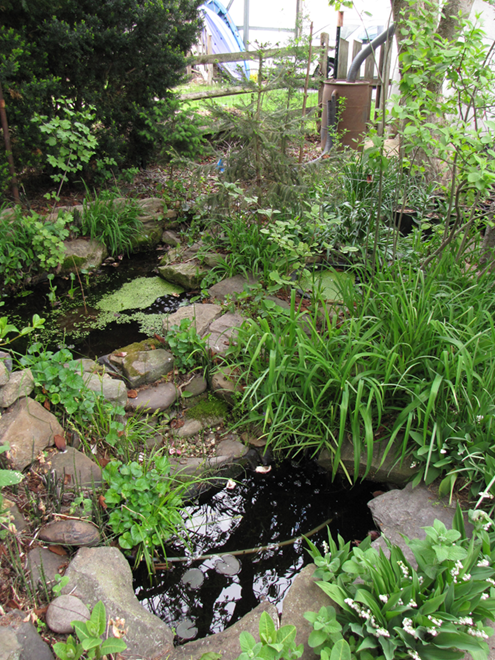On an adjacent segment of the same creek, this legacy sediment removal project restored a braided meandering channel and connected it to its newly liberated, historic floodplain. In just their second year, the fluvial wetlands are effectively absorbing stormwater and sequestering nutrients as an attached component of the stream’s riffle and pool complex. During our visit earlier this week, we found American Toads, Northern Leopard Frogs (Lithobates pipiens), and Northern Spring Peepers breeding here. It’s just as Castor canadensis would have it!