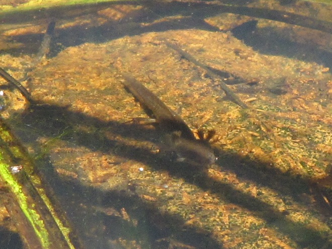 The American Toad (Anaxyrus americanus) is common near the undisturbed pollution-free fish-free vernal pools where it breeds during March and April.The American Toad (Anaxyrus americanus) typically has one “wart” in each of the dark spots on the dorsal surface. The next species, the Fowler’s Toad (Anaxyrus fowleri), has two or three. American Toad (Anaxyrus americanus) tadpoles in a vernal pool.American Toad (Anaxyrus americanus) tadpoles in a roadside ditch.Fowler’s Toad (Anaxyrus fowleri).Fowler’s Toads (Anaxyrus fowleri) breed in late May and June in temporary pools of water, often in streamside meadows, as seen here, or in other riparian wetlands. They are not nearly as widespread as the American Toad in the Lower Susquehanna River Watershed.