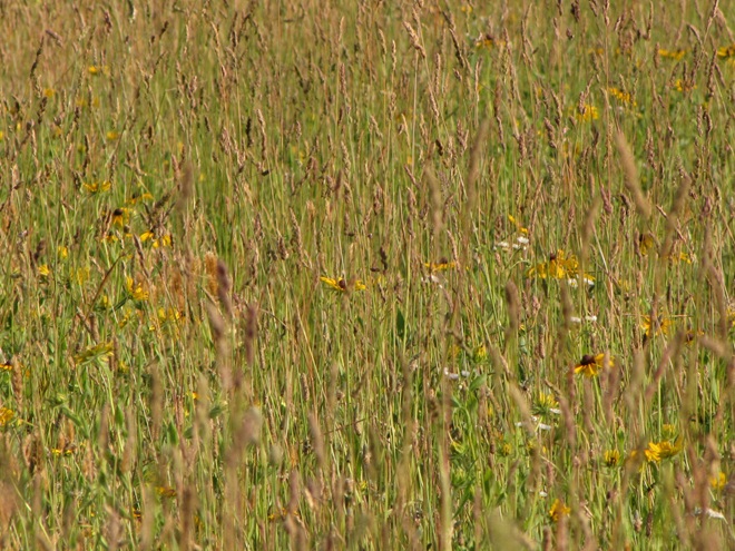 Cool-season grasses including fescue (Lolium species) and Orchard Grass (Dactylis glomerata) mature by late spring.  If left standing, they continue to provide indispensable habitat for grassland wildlife through the summer.  Mowing early and often for hay harvest has rendered most cool-season meadows death traps for nesting birds.  By delaying cuttings until at least early August, ground-nesting birds are given adequate time to fledge their young and get the juvenile birds strong enough to fly away from a set of spinning blades.