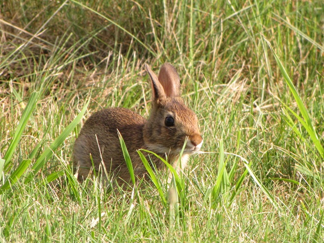Eastern Cottontails prosper in the mosaic of warm-season grasses and early successional thickets on lands sustained using prescribed fire.  Rabbits are primary consumers, eating mostly legumes and other plants, the producers that through the process of photosynthesis convert the energy of the the sun into food energy.