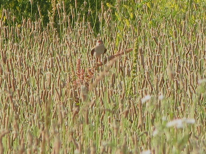 A male Grasshopper Sparrow sings to demarcate its nesting territory in a stand of Timothy.  An insectivore during the breeding season, he and his mate will raise their brood exclusively within the cover of these cool-season grasses.