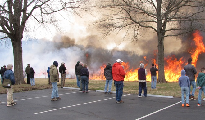 Visitors witness a prescribed fire demonstration at the Pennsylvania Game Commission’s Middle Creek Wildlife Management Area in 2025.