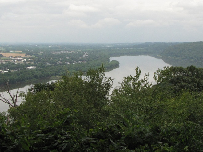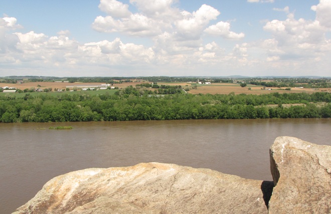 This low-gradient stretch of the Susquehanna at Marietta flows parallel to the Chickies Quartzite “Hellam Hills” before making a sharp right turn to punch through the ridge as a series of rapids.  Formerly a fully functional lotic ecosystem and a paradise for migrating waterfowl, this river segment is now impaired by accumulations of nutrient-laden sediments from agricultural and urban runoff.