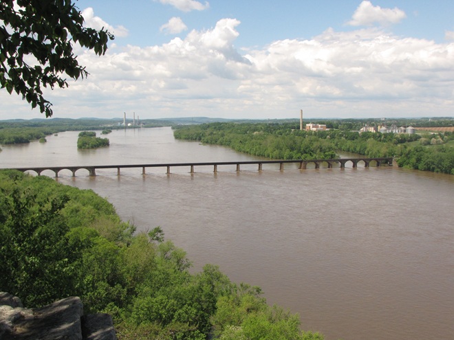 …past Brunner Island (left power plant stacks) and through Haldeman Riffles and the Shocks Railroad Bridge…